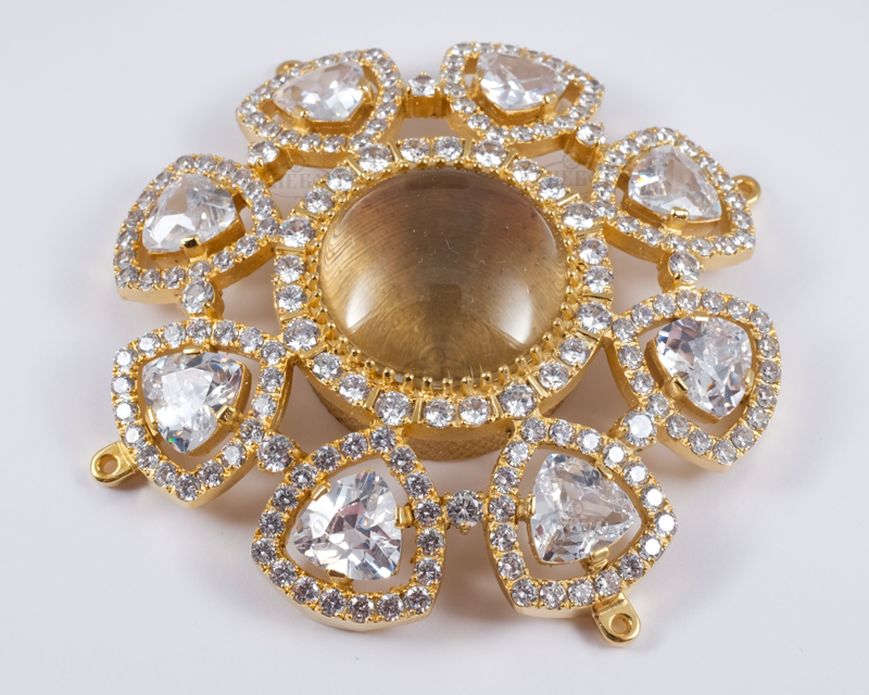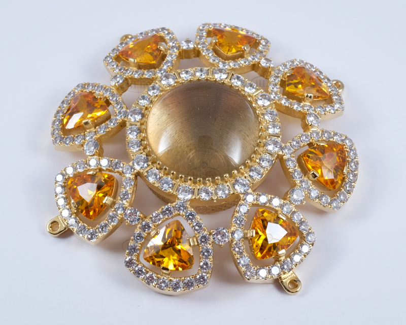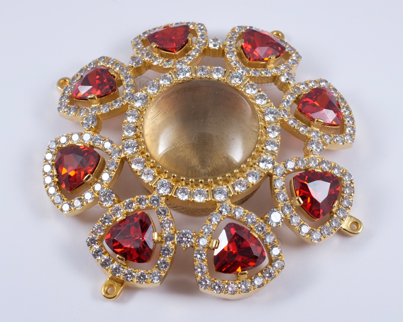 Кожен камінчик закріплений вручну нашими майстрами. Ми використовуємо тільки високоякісне ювелірне каміння - фіаніти. Є можливість вибору кольору каміння.